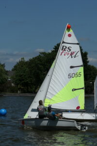 De boot & diploma’s:De RsFeva is onze tweemans-jeugd-boot, waar je in je samen met je maatje leert varen. Best spannend aan het begin, maar je krijgt het hoe dan ook snel onder de knie. De RsFeva is geschikt voor kinderen vanaf 10 jaar tot ongeveer 15 jaar, vanaf die leeftijd gaan we kijken naar de lengte en het gewicht van het kind. Wellicht is de Splash dan iets comfortabeler. Net zoals bij zwemmen werken we bij het zeilen met drie diploma’s. Als een cursist zelfstandig en veilig kan zeilen, zonder directe instructie van een instructeur krijgt hij/zij CWO 1. Dit is vergelijkbaar met het zwemdiploma A. Naarmate de techniek van het zeilen beter wordt en de cursist echt weet wat er gebeurt met de boot en de wind, kan hij/zij zijn CWO-2 behalen. Hiervoor is ook wedstrijdervaring nodig. Het kost een cursist van twee of meer volledige seizoenen om zijn/haar CWO-2 te halen.